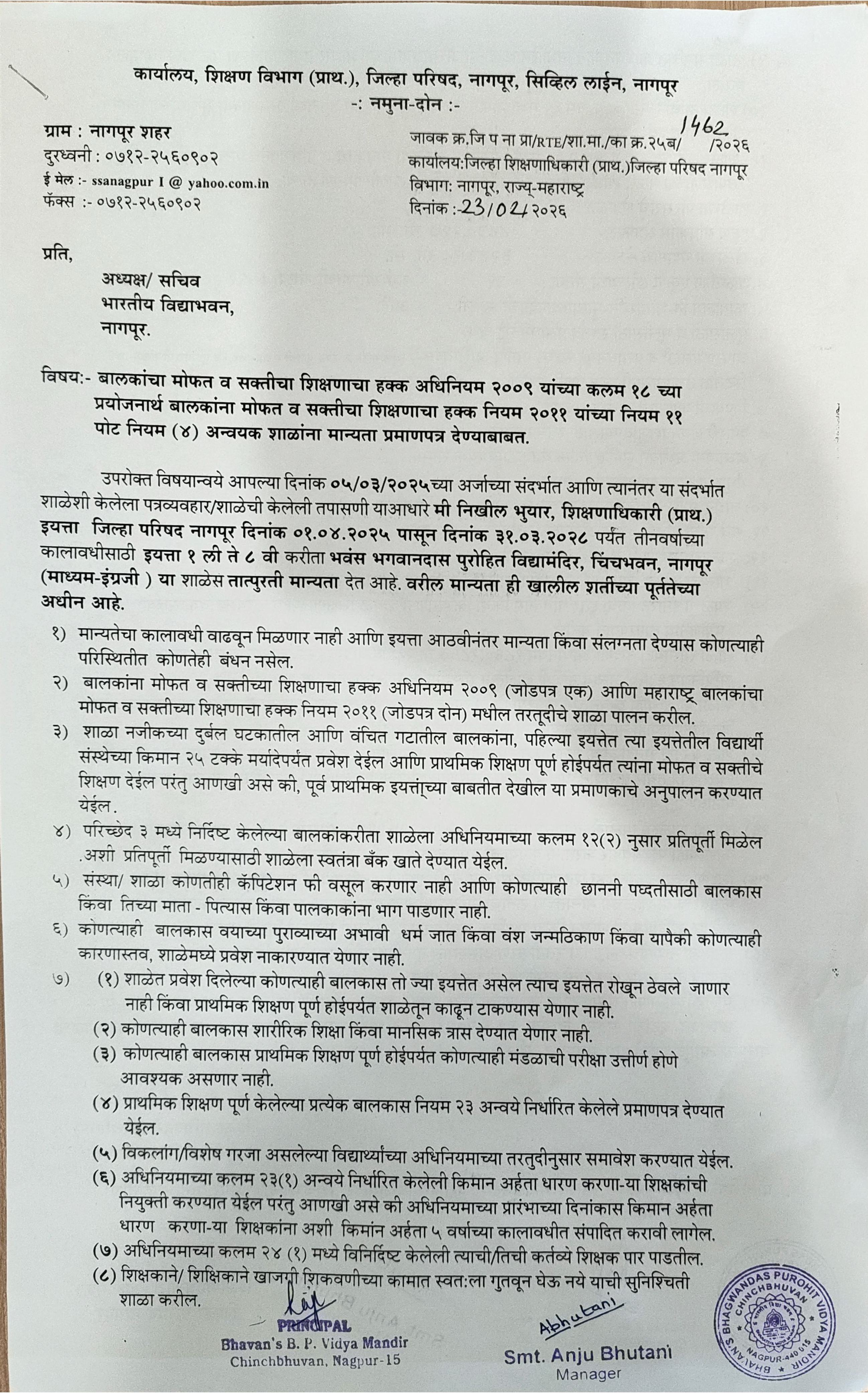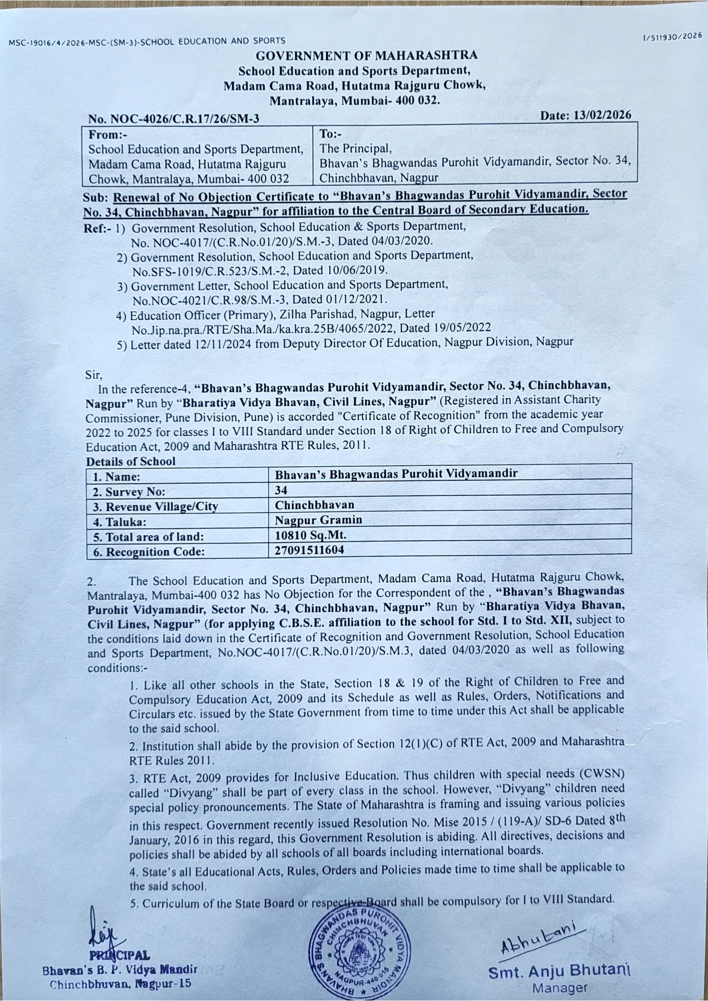 Recognition Certificate Under RTE Act